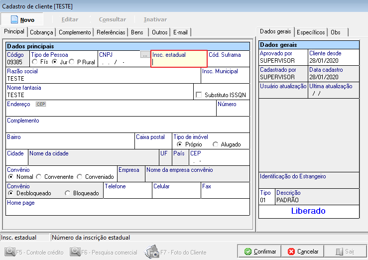 Se não tiver certeza de que a IE informada está correta, faça uma consulta no SINTEGRA ou no Cadastro Centralizado de Contribuintes (CCC) com o CNPJ e a UF para confirmar se é válida e/ou está correta.