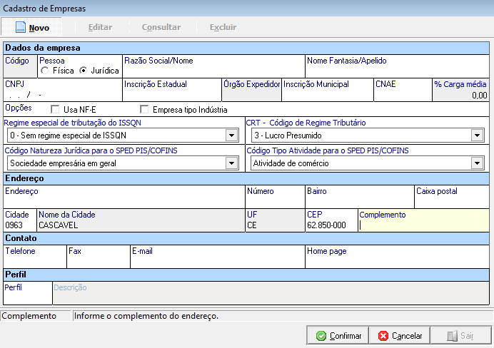 Na imagem, podemos observar que está selecionado Cascavel – CE, mas deveria ser Cascavel – PR.