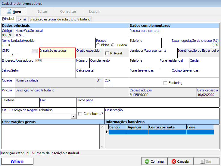 Caso seja um fornecedor, ajuste sua IE em seu cadastro (PAG000CA):