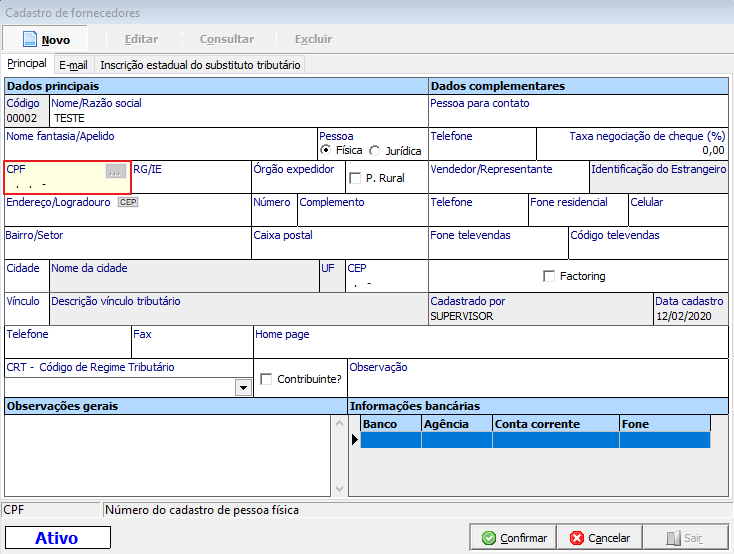 Ou ainda, caso seja um fornecedor ajuste em seu respectivo cadastro (PAG000CA):