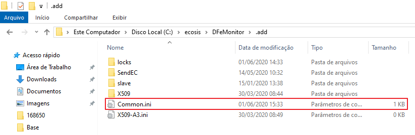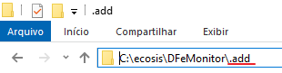 Primeiro faça a verificação do horário da máquina e confirme se o horário de verão realmente não esta ativo, depois entre na pasta oculta do DFeMonitor, digitando “\.add” no fim do caminho da pasta, como na imagem a seguir:
