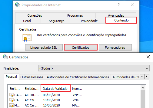 Verificar nas Opções da Internet, os Certificados e Remover os que já venceram da máquina.